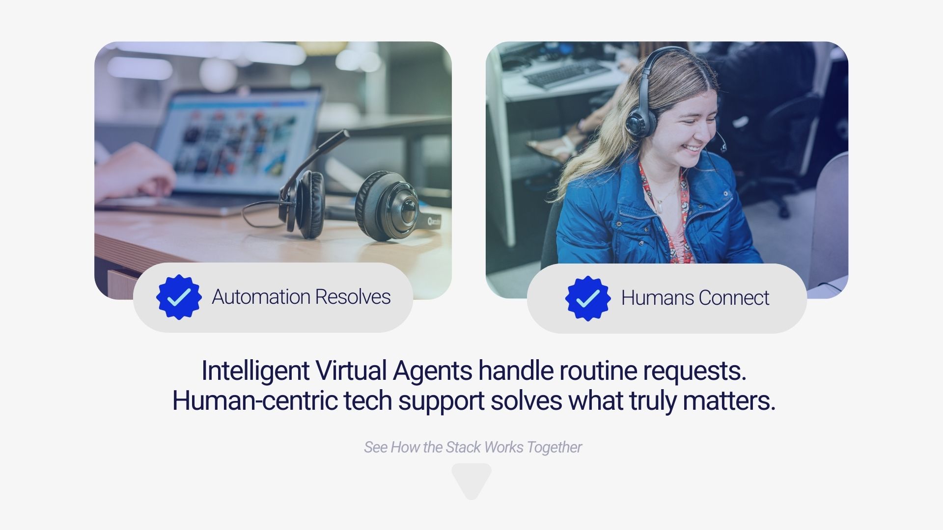 Well-equipped agents create faster, more accurate resolutions and deliver the human connection that drives loyalty. This is where human-centric tech support proves its strength: empowered people supported by contact center as a service and intelligent virtual agents, aligned through contact center solutions that remove friction.